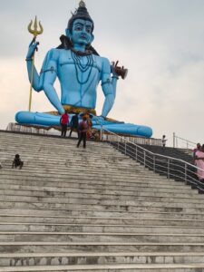 भगवान भोले शंकर की लगभग 80 फीट ऊंची प्रतिमा के पास पहुंचने के लिए नीचे से लगभग 35 सीढ़ियां चढ़कर ही आप उनका आशीर्वाद लेने के लिए उनके चरणों तक पहुंच सकते हैं। सैकड़ो श्रद्धालुओं का इस सीढ़ी से ऊपर चढ़ना और ऊपर पहुंचकर एक विजेता की तरह भोले बाबा के चरणों में खड़े होकर तस्वीर खिंचवाना यहां के प्रत्येक पर्यटक की प्राथमिकता में शामिल होता है। नीचे हाथ जोड़कर खड़े श्रद्धालु भोले बाबा की ऊंचाई की तस्वीर लेने में रुचि रखते हैं। इस विशाल प्रतिमा के दाहिने ओर एक प्राचीन शिव मंदिर स्थापित है इसे तपेश्वर महादेव मंदिर कहते हैं। यहां स्थापित मूर्ति के बारे में किवदंती है कि यह शिवलिंग लगभग 400 वर्ष पुरानी प्रतिमा है। कहा जाता है कि यहां भगवान शिव ने काफी वर्षों तक तपस्या की थी। इसीलिए इसका नाम तपेश्वर शिव मंदिर पड़ा। यह मंदिर उसी प्राचीन तपस्थली का हिस्सा है । प्राचीन मंदिर के कुछ पत्थर यहां वहां पेड़ों के नीचे दिखाई पड़ते हैं। इसी मंदिर के किनारे से बना एक रास्ता पर्यटकों को पीछे बने विशाल ज्योतिर्लिंग मंदिर संग्रहालय तक पहुंचाता है। ऊपर बनी शिव प्रतिमा के नीचे स्थित इस स्थान पर 100 फुट से ज्यादा लंबे चौड़े हाल में देश के विभिन्न स्थानों पर स्थापित 12 ज्योतिर्लिंगों की प्रतिमा यहां विराजमान है। यहां दीवारों पर लगे लगभग 8,× 4 फीट फ्रेम में इन सभी ज्योतिर्लिंग की अलग-अलग जानकारी उनके छायाचित्र के साथ दीवारों पर अंकित है जो हमें देश भर के ज्योतिर्लिंग की जानकारी देती है। इसी मजबूत कंक्रीट के स्तंभ पर ऊपर 80 फीट प्रतिमा का निर्माण किया गया है। इस विशाल परिसर में आयताकार मंच बनाकर अलग-अलग स्थलों पर द्वादश ज्योतिर्लिंग को छोटी-छोटी प्रतिमाओं को स्थापित किया गया है।