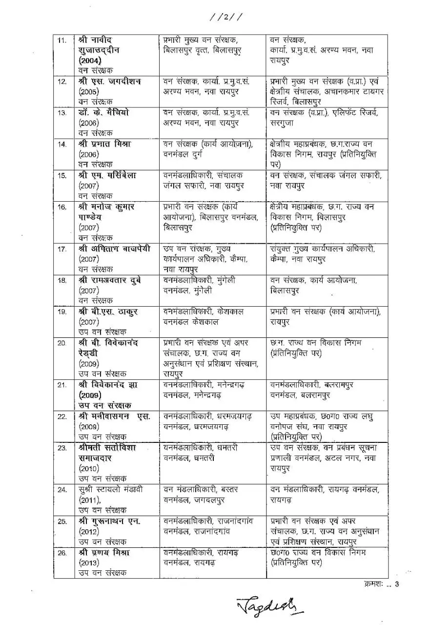 खास खबर वन विभाग में बड़ी सर्जरी : 42 IFS अफसरों का ट्रांसफर ऑर्डर जारी, देखिए पूरी सूची… खबर जागरण न्यूज़ February 23, 2022 1 min read वन विभाग में बड़ी सर्जरी : 42 IFS अफसरों का ट्रांसफर ऑर्डर जारी, देखिए पूरी सूची… रायपुर. वन विभाग में बड़ी प्रशासनिक सर्जरी की गई. 42 आईएफएस अफसरों को इधर-से-उधर किया गया है. मुख्य संपादक – मो उबैस ख़बर जागरण न्यूज़ Continue Reading Previous: इस जिले के 203 छात्रों को प्रैक्टिकल परीक्षा में किया गया फेल, जानिए क्या है वजह…Next: कलेक्टर पहुंचे स्वामी आत्मानंद स्कूल मनेन्द्रगढ़, त्रिकोणमिति के टेढ़े सवालों पर बच्चों के सटीक जवाब पर कलेक्टर हुए खुश, दी शाबाशी Leave a Reply Cancel replyYour email address will not be published. Required fields are marked *Comment * Name * Email * Website Save my name, email, and website in this browser for the next time I comment. Related Stories मनेन्द्रगढ़ की बेटी दामिनी साहू ने रचा इतिहास, शास्त्रीय गायन में जीता स्वर्ण पदक 1 min read खास खबर छत्तीसगढ़ मनेंद्रगढ़-चिरिमिरी-भरतपुर मनेन्द्रगढ़ की बेटी दामिनी साहू ने रचा इतिहास, शास्त्रीय गायन में जीता स्वर्ण पदक February 2, 2026 विकसित और आत्मनिर्भर भारत की दिशा में मजबूत कदम है केंद्रीय बजट 2026–27: मंत्री श्याम बिहारी जायसवाल 1 min read खास खबर छत्तीसगढ़ मनेंद्रगढ़-चिरिमिरी-भरतपुर विकसित और आत्मनिर्भर भारत की दिशा में मजबूत कदम है केंद्रीय बजट 2026–27: मंत्री श्याम बिहारी जायसवाल February 1, 2026 केंद्रीय बजट 2026 : चिकित्सा क्षेत्र में ऐतिहासिक फैसले, स्वास्थ्य सेवाओं को नई दिशा 1 min read खास खबर छत्तीसगढ़ मनेंद्रगढ़-चिरिमिरी-भरतपुर केंद्रीय बजट 2026 : चिकित्सा क्षेत्र में ऐतिहासिक फैसले, स्वास्थ्य सेवाओं को नई दिशा February 1, 2026