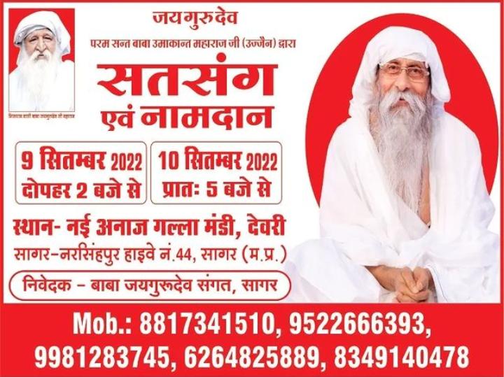 जयगुरुदेव बाबा उमाकान्त जी का भव्य सतसंग व नामदान कार्यक्रम 9 व 10 सितंबर को सागर (म.प्र.) में