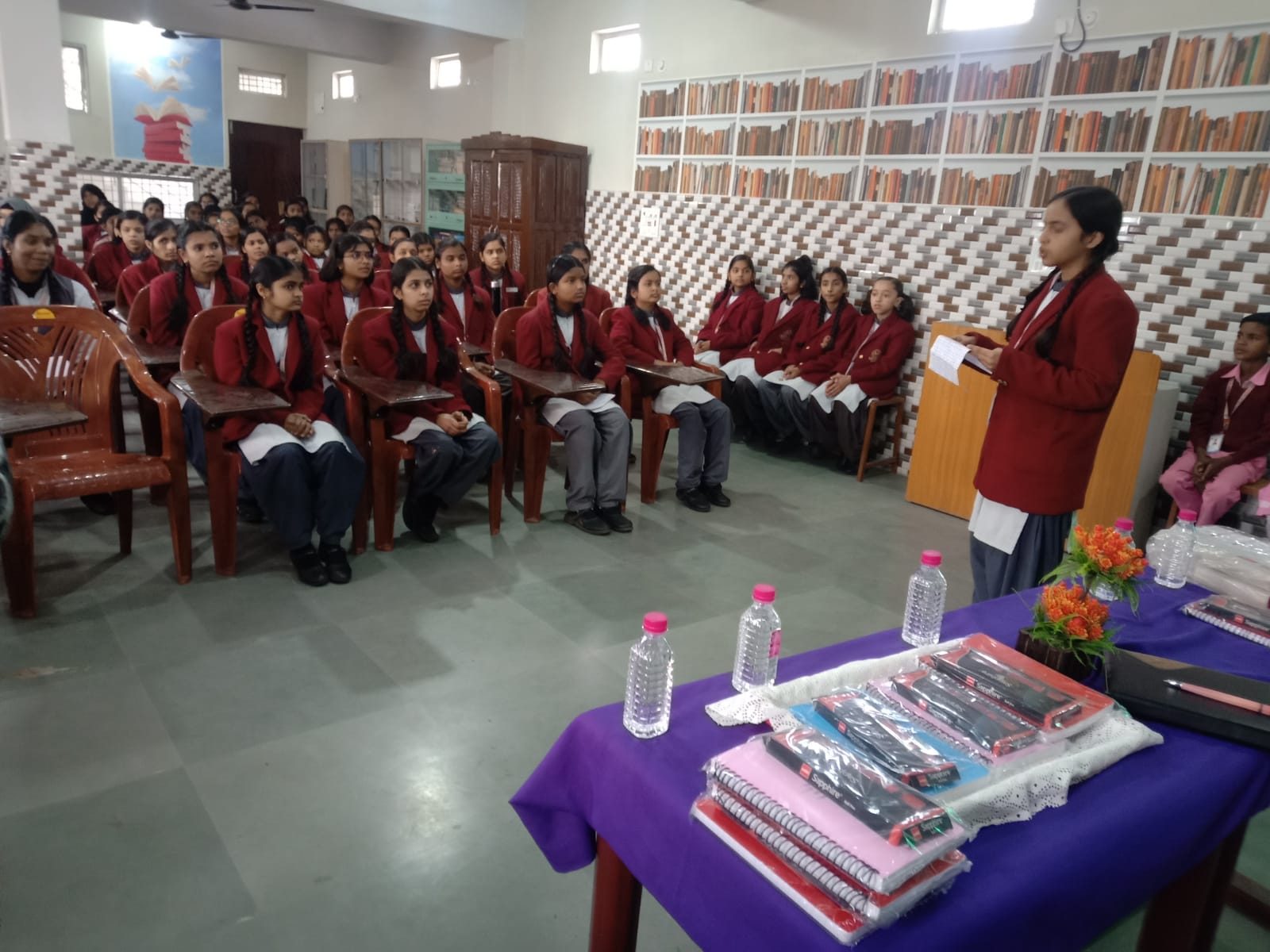कार्यक्रम का आरम्भ माता सरस्वती की वंदना एवं उनकी छायाचित्र पर पुष्पांजलि अर्पित कर किया गया। आज का यह कार्यक्रम विजय इंग्लिश मीडियम हायर सेकेण्डरी स्कूल मनेन्द्रगढ़ के द्वारा जिला नोडल रेडक्राॅस श्री स्वामेन्द्र मण्डल, जिला प्रबंधक शहरी श्री राकेश वर्मा, चिकित्सा अधिकारी डाॅ0 संजना खलखो और ऐश्वर्या जैन एवं आर.एम.एन.सी.एच. काउंसलर श्रीमती दीक्षा यादव के आतिथ्य में इन अतिथियों एवं विद्यालय के संयुक्त तत्वाधान में सम्पन्न हुआ।