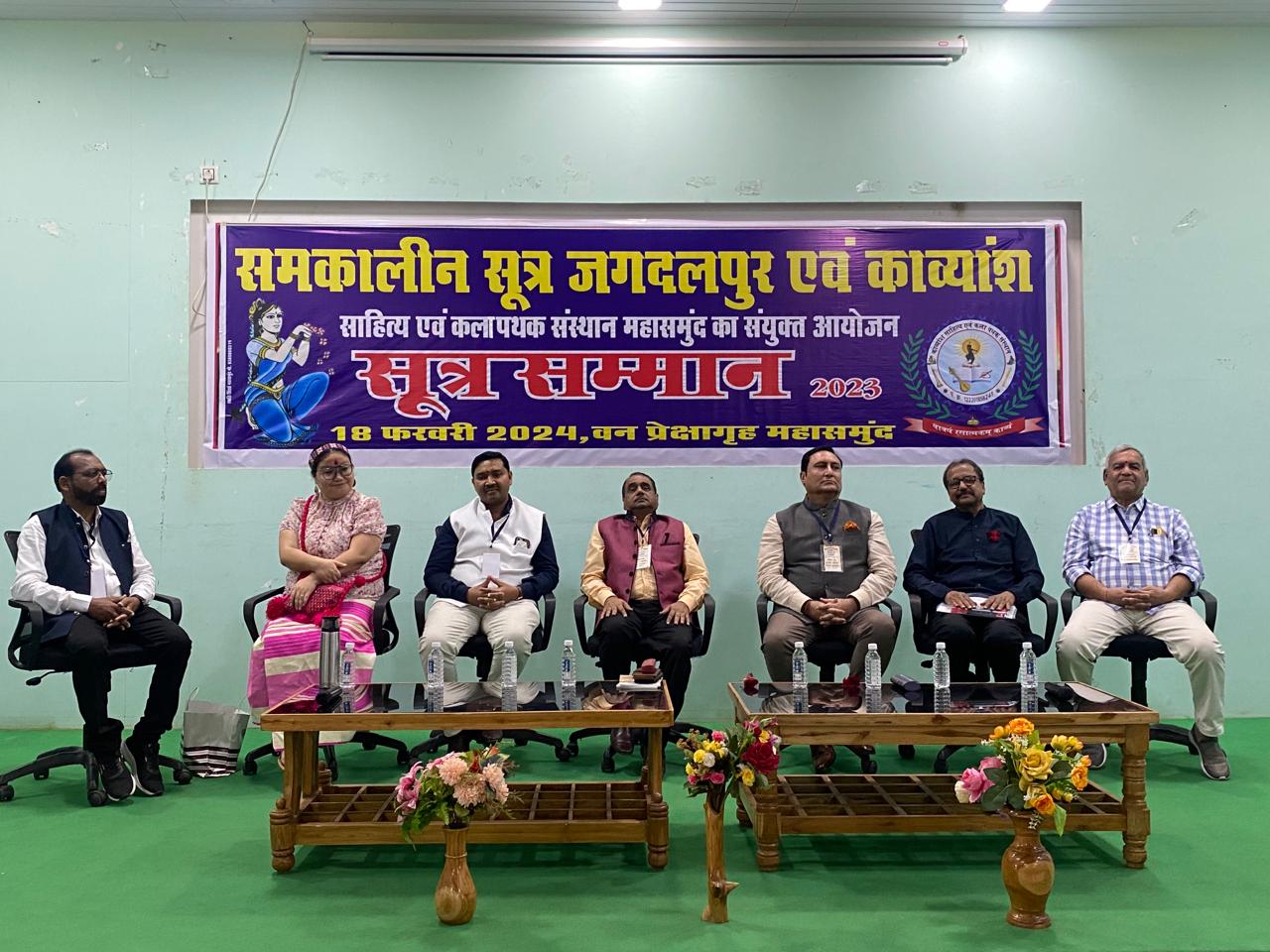 बहु चर्चित साहित्यकार एवं संभागायुक्त रायपुर माननीय श्री संजय अलंग के मुख्य आतिथ्य एवं दुर्ग वि.वि. के कुलसचिव एवं वरिष्ठ साहित्यकार डा. भूपेन्द्र कुलदीप की अध्यक्षता में छत्तीसगढ़ महासमुंद जिले की संस्था काव्यांश साहित्य एवं कला पथक संस्थान एवं समकालीन सूत्र परिवार के संयुक्त आयोजन का यह रचनात्मक साहित्य उत्सव एक ऐतिहासिक दस्तावेज बन गया. साहित्य समागम के इस बृहद कार्यक्रम में छ.ग. प्रशासन सचिव एवं वरिष्ठ साहित्यकार माननीय त्रिलोक महावर एवं ईश्वर शर्मा की विशिष्ठ उपस्थिति ने इसे गौरवान्वित किया. छ.ग. की 47 वर्षों की साहित्यिक एवं सांस्कृतिक संस्था संबोधन साहित्य एवं कला विकास संस्थान मनेन्द्रगढ़ के साहित्यकार बीरेंद्र कुमार श्रीवास्तव, गौरव अग्रवाल एवं संबोधन के पूर्व अध्यक्ष सरदार दलजीत सिंह कालरा ने सूत्र के आमंत्रण पर इस कार्यक्रम मे भागीदारी की.