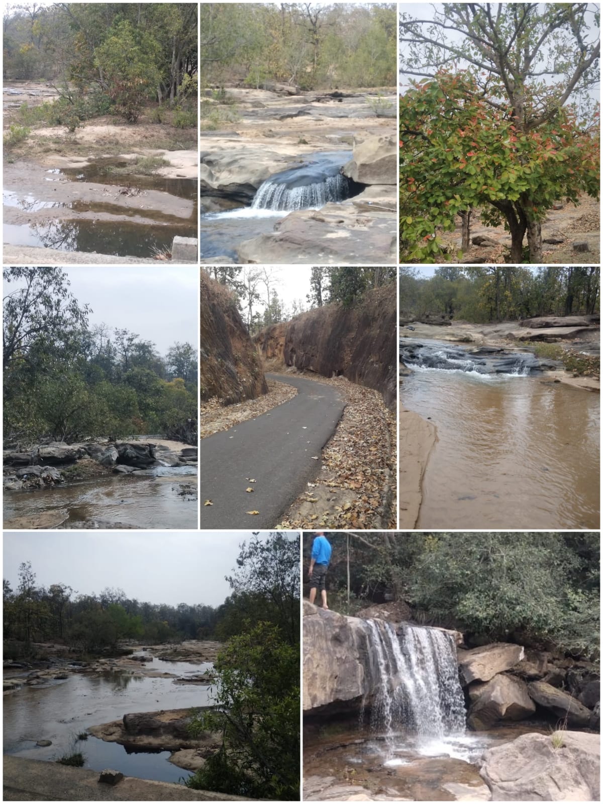 तिलझरिया नदी के इस संगम में शांत बहने वाली नदी जब दाहिने – बाएं मुड़ती हुई आगे बढ़ती है तब ऐसा प्रतीत होता है कि कोई छोटा नटखट बच्चा अपने छोटे-छोटे पैरों पर दौड़ने की कोशिश कर रहा हो और लड़खड़ा कर गिरने के बाद अपने आसपास चारों तरफ एक नजर देखकर पुनः उठ खड़ा होता है और फिर दौड़ने लगता है. इसी बहते पानी के शांत गुनगुनाते स्वर का आनंद लेना चाहे तब आसपास नदी के रेत के बीच पड़े चट्टानों पर लेट कर अपनी आंखें मूंद कर शांत मन से इस बहते जलधारा के गुनगुनाते गीत आप सुन सकते हैं. कहीं-कहीं यह बहता पानी अपने रास्ते में अचानक छलाँग लगाकर चट्टानों से नीचे किसी बच्चों जैसी कूद जाती है, और छोटे जलप्रपात का सौंदर्य बोध कराती है. इसी जलप्रपात के पास बैठकर अपने हथेलियां से पानी की धार की संवेदना को महसूस करना ऐसे क्षण है जिसे केवल महसूस किया जा सकता है शब्दों में नहीं लिखा जा सकता. इन्हीं संवेदना के क्षणों से कवि की कल्पना कविता रचती है और कलाकार को कुछ नये निर्माण की प्रेरणा देती है. बहते पानी की धार में अपने पैर डालकर सूरज की किरणो के परावर्तन से बदलते पैरों के रूप का आनंद हमें भाव विभोर कर देता है पानी के बहने के साथ-साथ जैसे-जैसे आप आगे बढ़ते हैं, जलप्रपात की क्रमशः बढ़ती ऊंचाई अर्थात पानी का ज्यादा गहराई में गिरने का रूप ऐसा प्रतीत होता है मानो आप किसी बढ़ते हुए बच्चे की किशोरावस्था का सौंदर्य देख रहे हो, और खुशी महसूस कर रहे हो. आगे बढ़कर यह जलप्रपात लगभग 15 फीट ऊंचाई से गिरती है. यहां आप अपने बच्चों को ऊंचाई से पानी का बहाव एवं नीचे गिरते पानी तक पहुंचकर जलप्रपात के निर्माण की भौगोलिक कहानी बता सकते हैं. परिवार के साथ गुनगुनी रेत पर कुछ घंटे की आपकी यात्रा आपको पूरी तरह तनाव मुक्त कर देती है. सूखी रेत को खोद कर स्वच्छ निथारा हुआ पानी पीना तथा गीले रेत को परौं के ऊपर थापकर छोटे-छोटे घरों का निर्माण बच्चों के स्मृतियों के वे पन्ने हैं जो आपको केवल यही मिलेंगे और एक बार रेत के इस घर को बनाने के बाद बच्चे इसे जीवन जीवन भर भूल नहीं सकते.