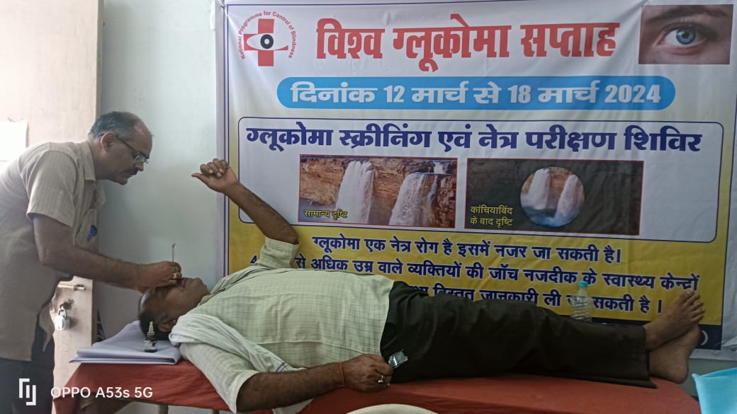 एमसीबी :- अंधत्व नियंत्रण कार्यक्रम के तहत ग्लुकोमा सप्ताह के दौरान मरीजों का परीक्षण कर बीमारी के बारे में जानकारी एवं बचाव के बारे में बताया गया। 40 वर्ष से अधिक आयु वाले को नियमित परीक्षण कराना चाहिए।