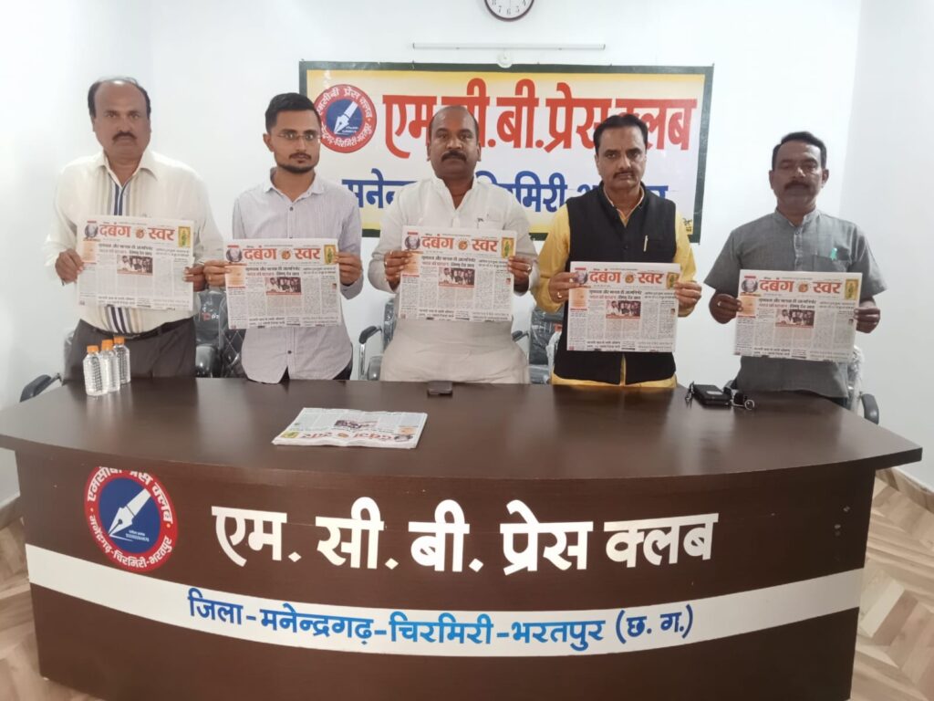 एमसीबी :- छत्तीसगढ़ की राजधानी रायपुर के साथ-साथ अब उत्तर छत्तीसगढ़ के जनपद मनेन्द्रगढ़ और कोरिया जिले से भी “दैनिक दंबग स्वर” का स्वतंत्र संस्करण प्रकाशित होने जा रहा है। इसका औपचारिक विमोचन शुक्रवार 24 अक्टूबर 2025 की शाम 3 बजे एमसीबी प्रेस क्लब पत्रकार भवन मनेन्द्रगढ़ में गरिमामय समारोह के बीच संपन्न हुआ। विमोचन समारोह के मुख्य अतिथि भरतपुर–सोनहत विधानसभा के पूर्व विधायक गुलाब कमरों रहे। उन्होंने दीप प्रज्वलन कर कार्यक्रम की शुरुआत की और “दैनिक दंबग स्वर” के मनेन्द्रगढ़ एवं कोरिया संस्करण का शुभारंभ किया।