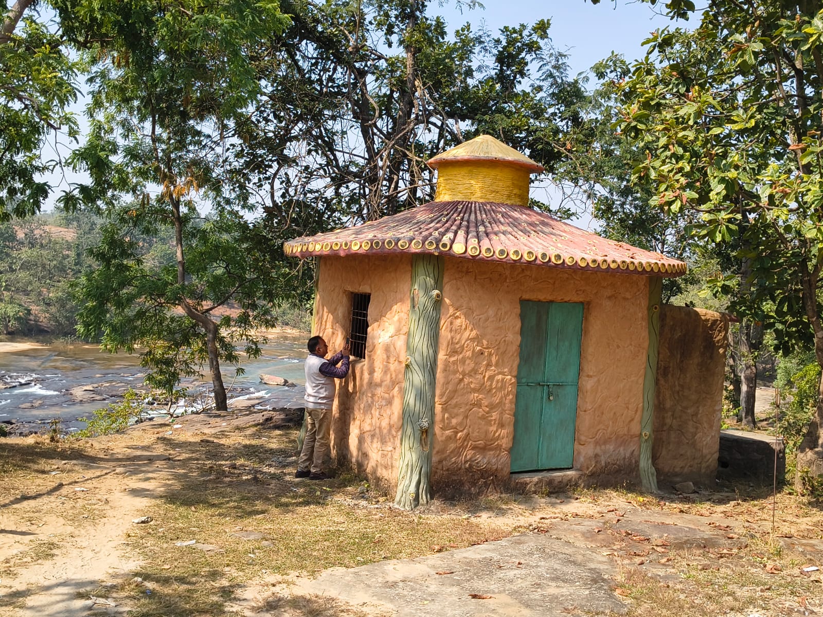 वन एवं जलवायु परिवर्तन विभाग ने जंगलों की गोद में गिरते इस जलप्रपात तक आने वाले प्रकृति प्रेमी पर्यटकों को इसकी पूरी खूबसूरती से दिखाने के लिए लगभग 40 फीट ऊंचा वॉच- टावर बना रखा है। यहां से आप आसपास का प्राकृतिक नजारा देख पाएंगे। एक-एक मंजिल पर चढ़कर प्राकृतिक खूबसूरती का दृश्य की फोटोग्राफी करना आपको हर क्षण एक नई खुशी में शामिल करता है यही कारण है कि आपको तीसरी मंजिल तक पहुंचने में भी नई खुशी का एहसास होता है। इसी जलप्रपात के किनारे सुरक्षित ऊंचे स्थान पर कुछ गोल कमरे नुमा संरचना बनाई गई है जो बाहर से एक कमरे का जंगल में सुरक्षित मकान दिखाई देता है। अक्सर इस तरह के मकान गांव में आदिवासियों के द्वारा घास फूस की छप्पर डालकर बनाए जाते हैं लेकिन यहां यह मॉडल के रूप में ऊपर में गोल छत में ग्रामीण खपड़े की डिजाइन इसे आकर्षक बनाती है। इसके एक किनारे का हिस्सा बाहर से पाइप के द्वारा एक भूमिगत टंकी से जोड़ दिया गया है जो स्वच्छता व्यवस्था के लिए बनाई गई है। लेकिन जगह-जगह टूटी हुई टंकियां और पाइप इसकी एक अलग कहानी कहती हैं । आसपास के ग्रामीण भी इस संरचना की कोई ठोस जानकारी नहीं दे पाए। बाघ अभ्यारण के जंगलों से जुड़े इस स्थल पर आकस्मिक स्थिति में आप इस एक कमरे में झोपड़ी के मकान में अपने आप को सुरक्षित रख सकते हैं। घाट की ओर जाते हुए एक स्थान पर बने शिव मंदिर के सामने आस्था के साथ आशीर्वाद प्राप्त करने के लिए प्रणाम कर सिर झुकाना हमारी परंपरा में शामिल है। यह एक ग्रामीण परिवार को यहां ठहरने तथा अपने परिवार का भरण पोषण करने का आधार भी बनता है। पर्यटकों की आस्था को देखते हुए एक दुकान में नारियल अगरबत्ती एवं बच्चों के बिस्किट एवं पाप कर्म का मिलना भी एक और परिवार को रोजी-रोटी देता है तथा इसकी उपस्थिति आपको सुनसान जंगल के बीच इस पर्यटन स्थल पर आपके एकाकीपन के दूर करने के लिए पर्याप्त संसाधन उपलब्ध कराता है। स्थानी ग्राम जीवन से जुड़े हुए उनके कारण कभी आकस्मिक विपरीत परिस्थितियों में यह आपका सहयोगी भी बन जाता है। जलप्रपात का आकर्षण आपको लगातार अपने और पास आने का निमंत्रण देता है किंतु सावधान आपकी छोटी सी चूक जीवन मरण का प्रश्न बन सकती है। वन विभाग ने इसे महसूस करते हुए जलप्रपात को देखने एवं फोटोग्राफी के लिए सुरक्षित सीमेंट से बने ठोस लकड़ी नुमा जाली की आकर्षक फेंसिंग बना रखी है जो हमें दूर से जलप्रपात के दर्शन के लिए प्रेरित करती है। जाली के भीतर आप अपने आप को सुरक्षित महसूस करते हैं।